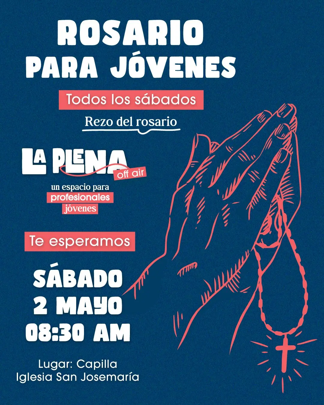 Te esperamos todos los sábados a las 8:30 AM en la Capilla de la Iglesia San Josemaría.
